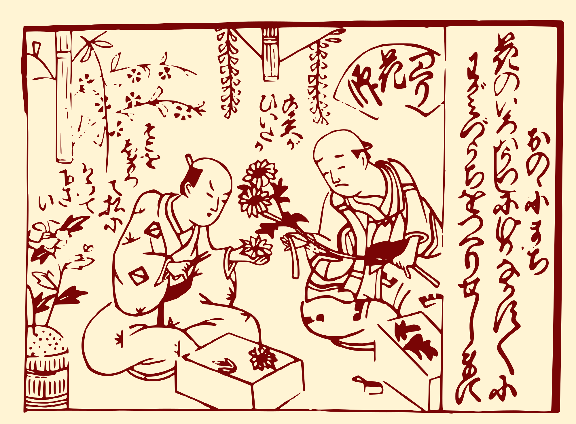 I was inspired by an old 2016 clipart by yamachem of edo period clockmakers... so I made a few more! these guys are doing work with flowers