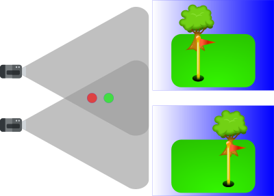 Illustration showing stereo vision. Based on https://openclipart.org/download/12791/Anonymous-golf-flag.svg , https://openclipart.org/detail/180028/golf-green and https://openclipart.org/detail/323966/camera-field-of-view