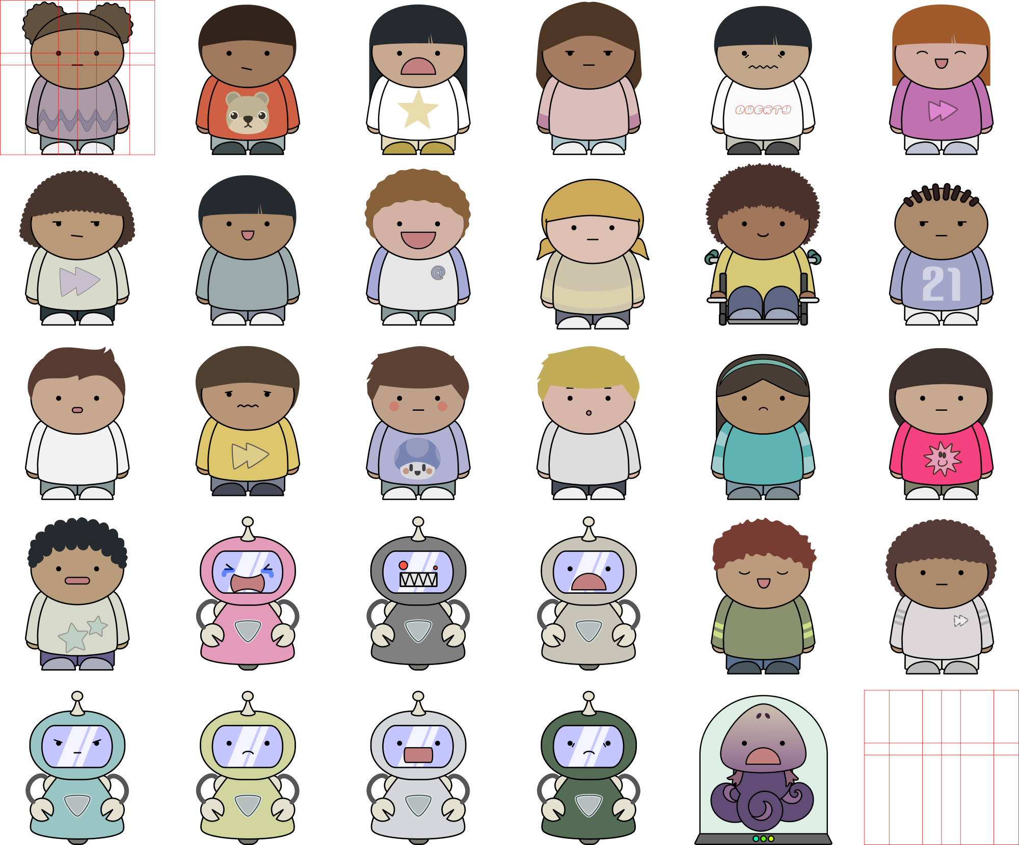 A collection of kid characters (and a few robots and an alien squid monster) with expressions, hairstyles etc that you can mix and match.