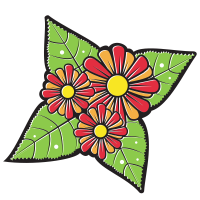 A flower with big green leaves.