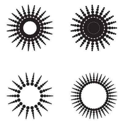 Black halftone shapes.