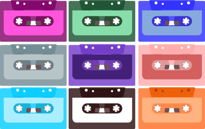 A collection of compact cassettes in various colours.Did a remix without the texts.