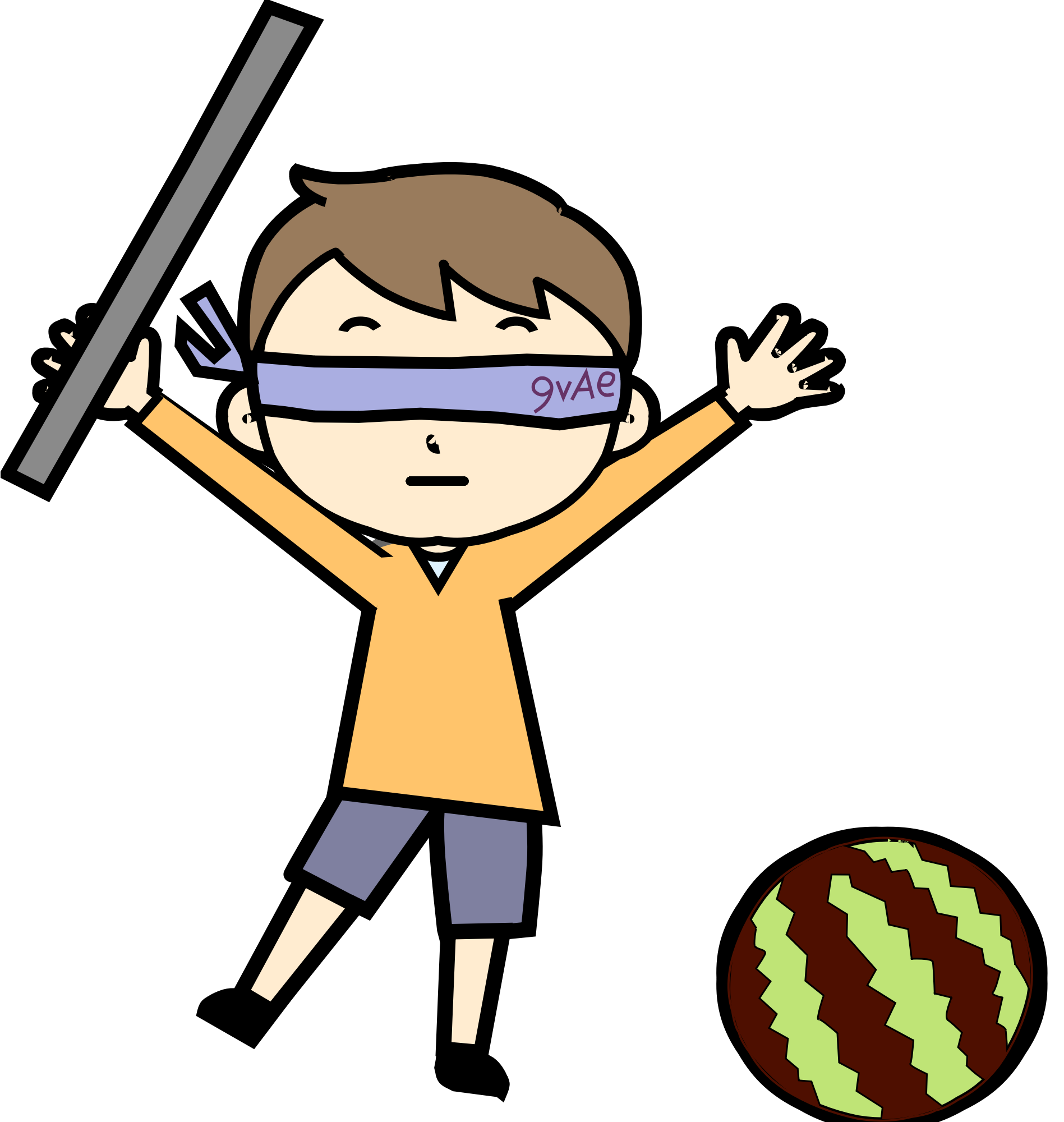 An animation of a boy doing "suikawari" summer Japanese kids game .--- You can Edit this Animation by #9VAe (https://codepen.io/danjiro/post/9vae-introduction).#SMIL animation.