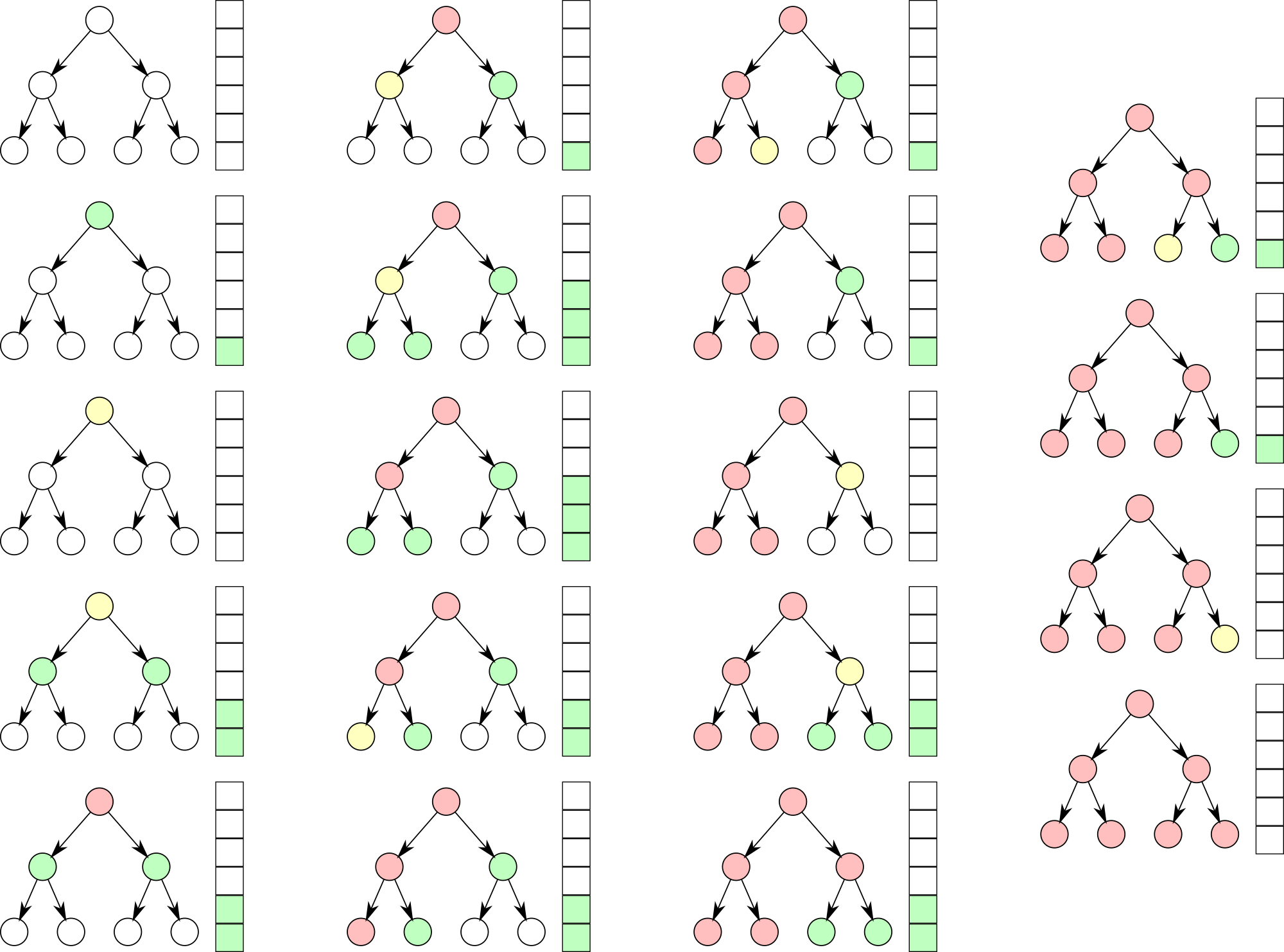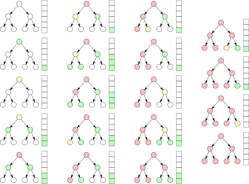 Illustration showing how nodes are expanded on a search tree using a depth first search algorithm.