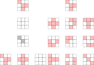 A 3x3 grid for a lights out game. Note that this was created to show how to solve it using a search algorithm (breadth first search or depth first search or anything based on either one) but this problem can be easily (and faster) solved analytically.