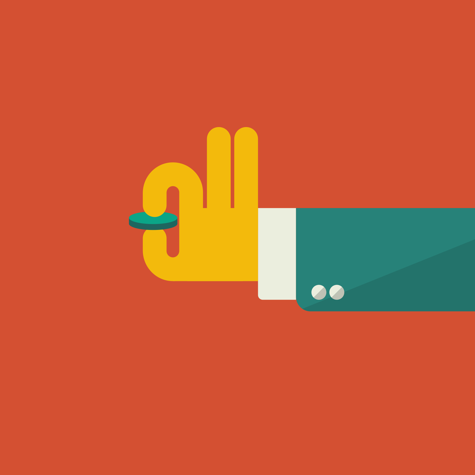 Cartoon image of a hand holding a coin.