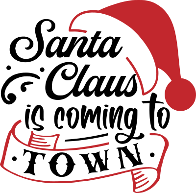 Text saying "Santa Claus is coming to town" and a Santa hat.