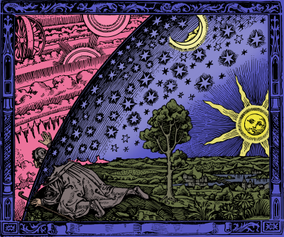 - remix+325533 Flammarion knowledge quest mystical scientific universe spirtual space nature illustration break reality surreal colour color