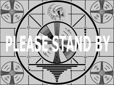 I thought I would remix this into the classic "please stand by" sign that was used when the TV feed was suddenly cut, often used as a gag in movies or TV shows these days