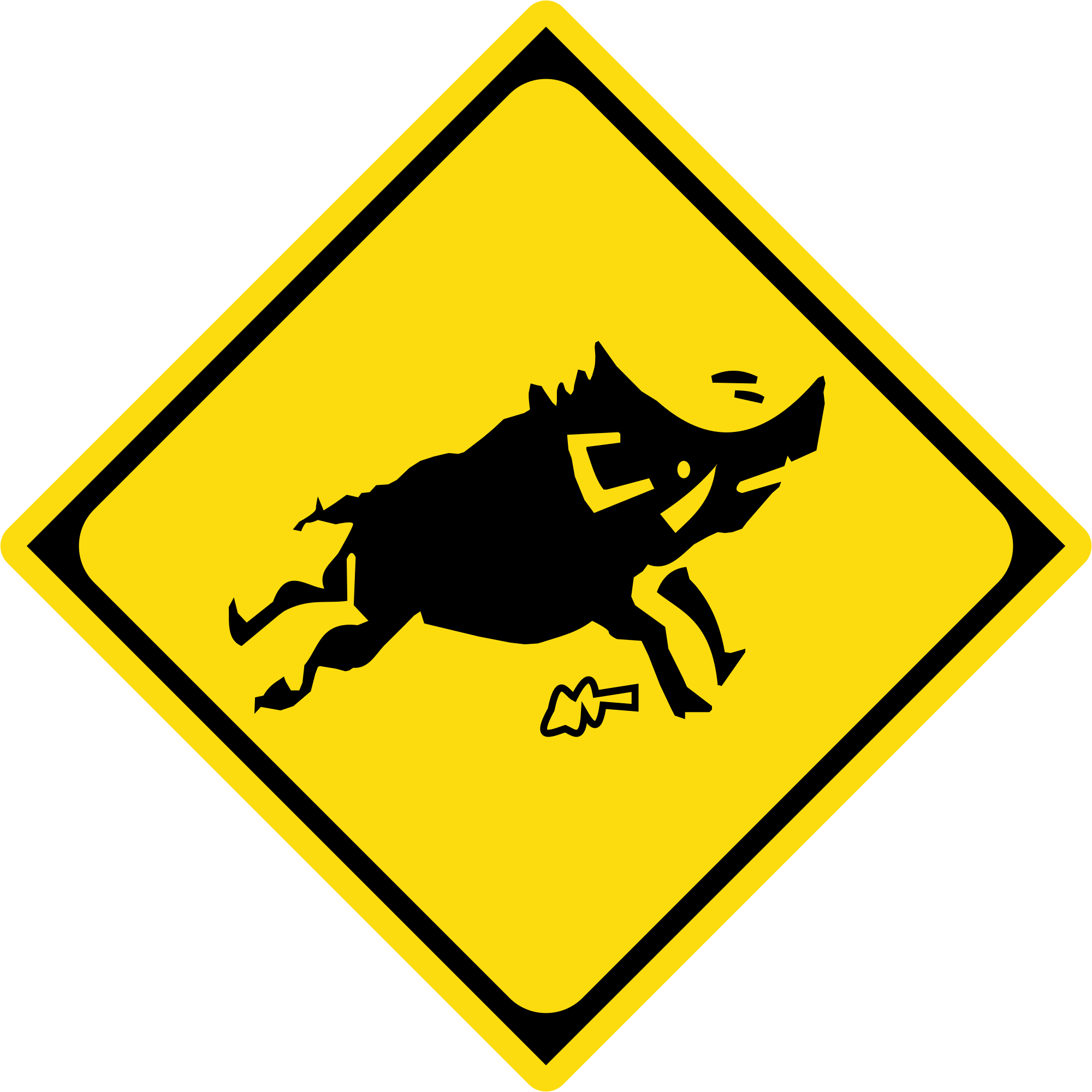 - animal crossing warning caution 214-2 road sign Japan Japanese careful boar wild wild boar