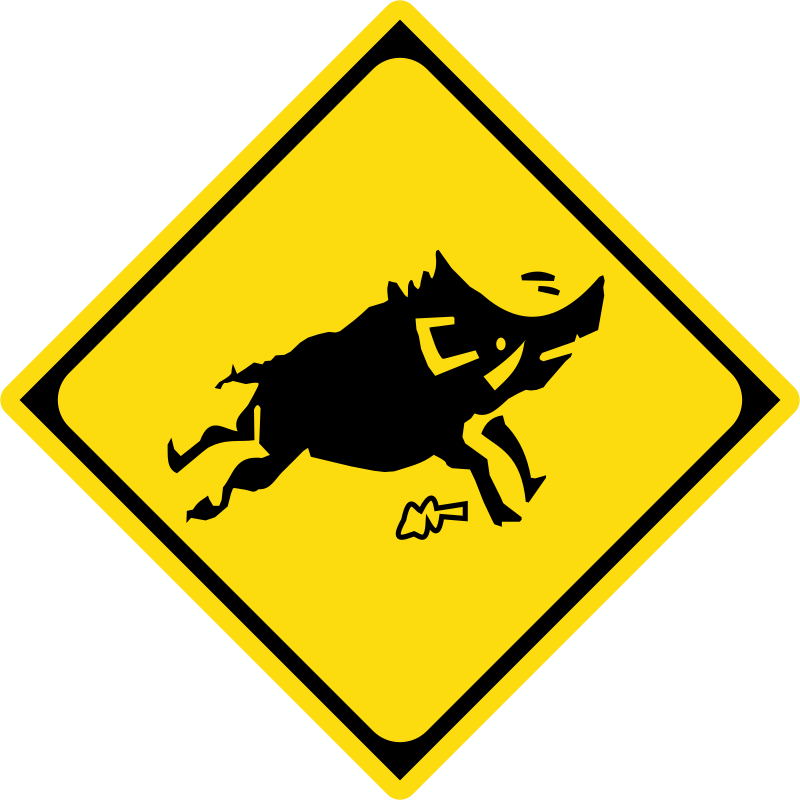 this is a Japanese road sign for animal crossing, specifically marking for a boar (already public domain by law, based on work created by user Monaneko but modified to show a boar/inoshishi)