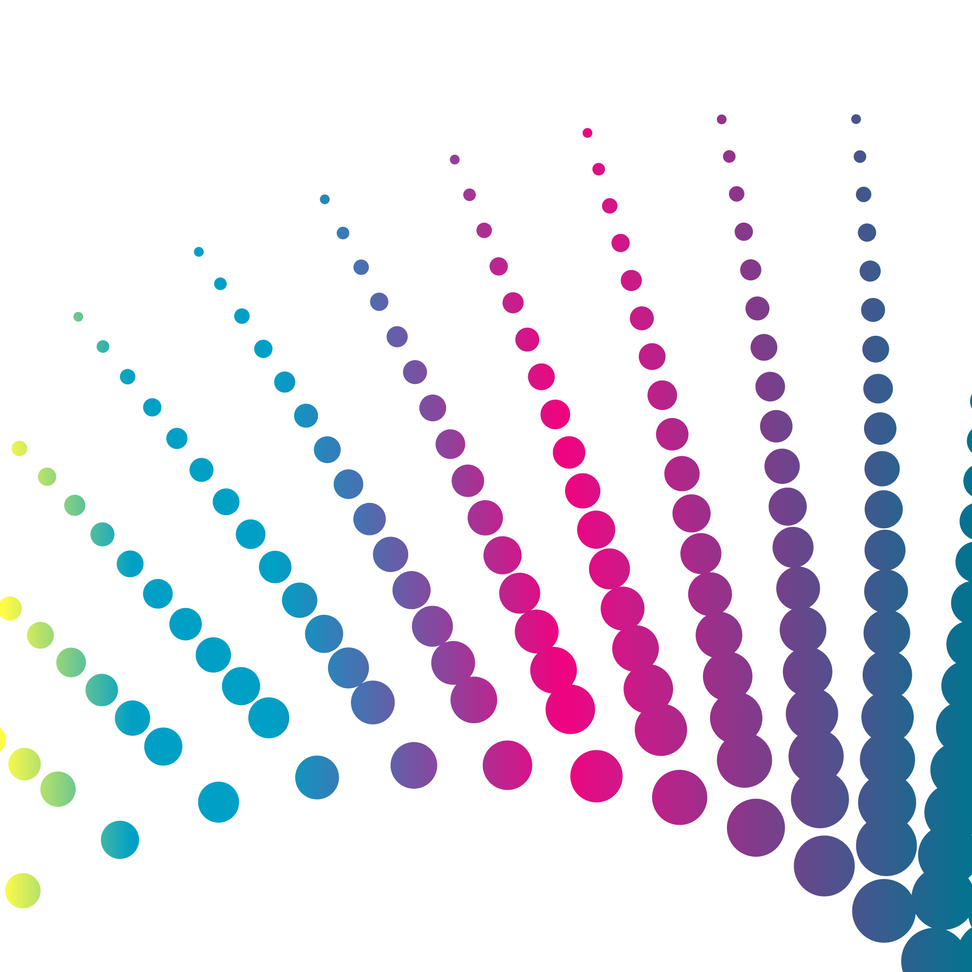 Colourful dotted pattern on white background.