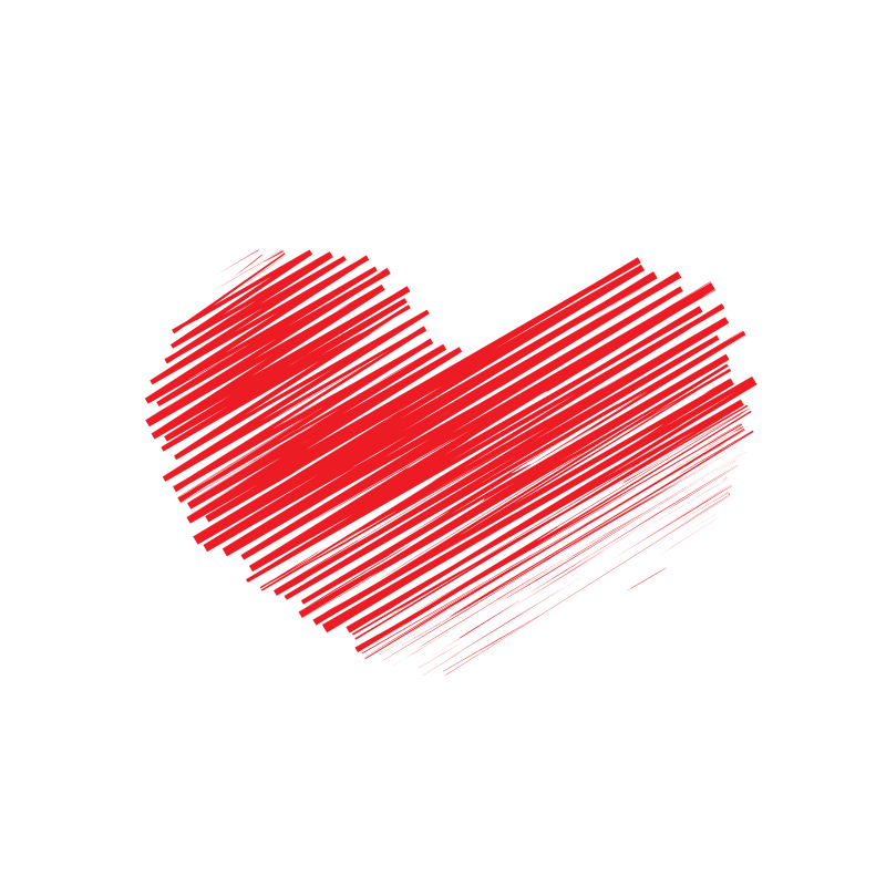 Silhouette of a red heart with scribble effect.
