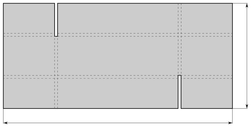 Dimensioned sketch unfolded cardboard box.