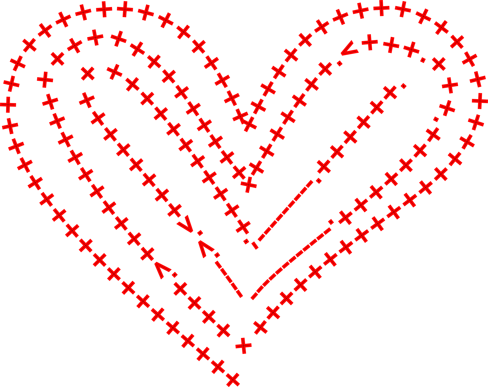 I wrote Brainfuck code to print a encoded text "I LOVE YOU". Then i used Inkscape to write a path and put recieved Brainfuck encoded code on it. Then i converted created object to path. You can make your own custom Brainfuck Valentine manually i shared an idea with you.