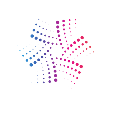 Abstract logo design with halftone dots.