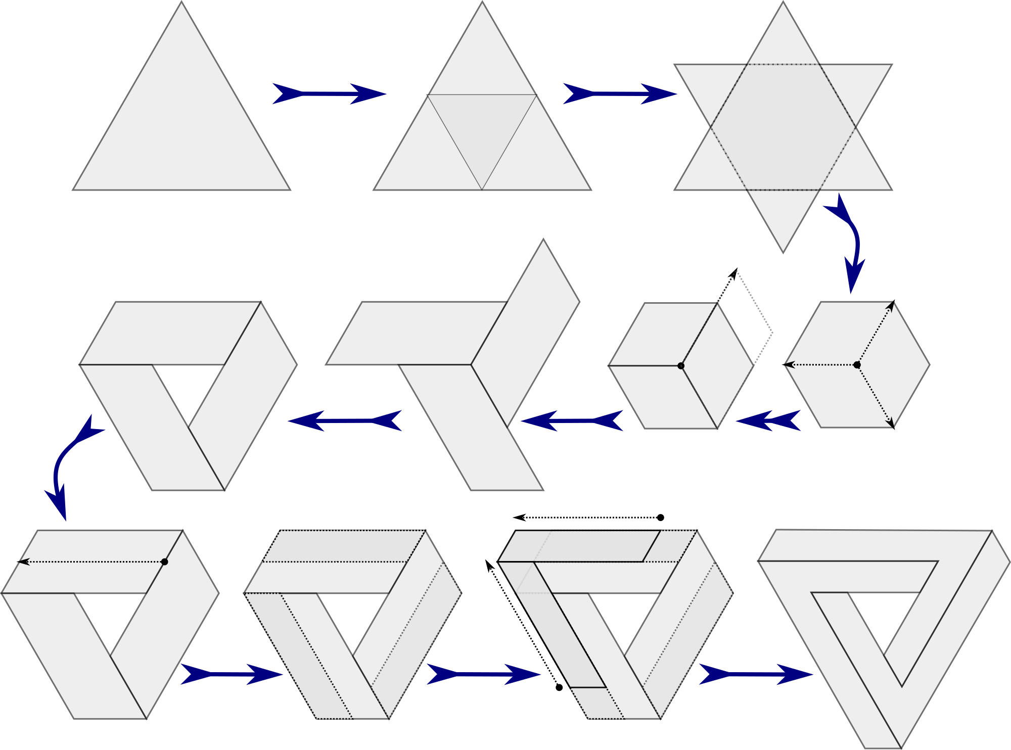 The step-by-step evolution of triangle to impossible triangle