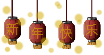 @rejon rightfully pointed out we are lacking in new Chinese New Year clipart. This might be a little late for this year, but can be used forever from nowwww! Four lanterns with the phrase "happy new year" written in simplified (mainland China) Chinese characters