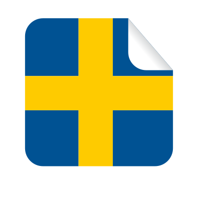 Square peeling sticker with the Swedish flag.