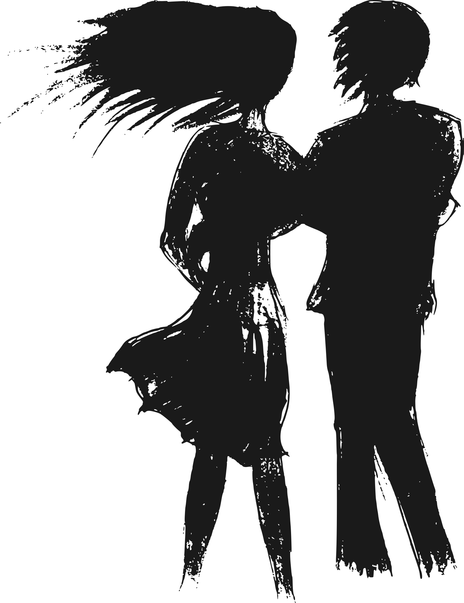 Silhouette of a couple of lovers in wind.