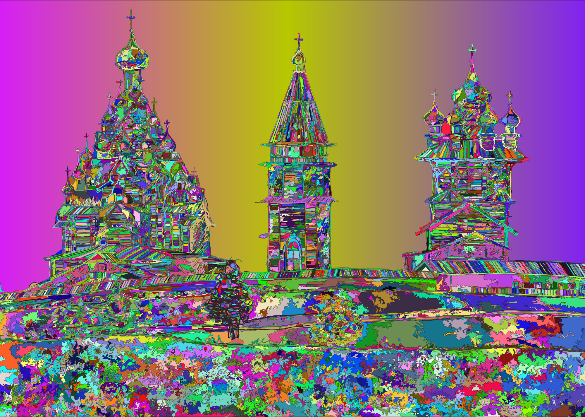 - Kizhi Church Russia God Religion Landmark Culture Architecture Building Line Art Abstract Geometric Colorful Prismatic Chromatic Rainbow Surreal Psychedelic