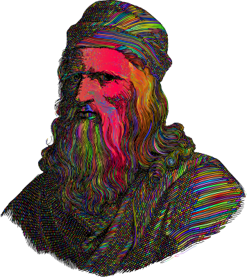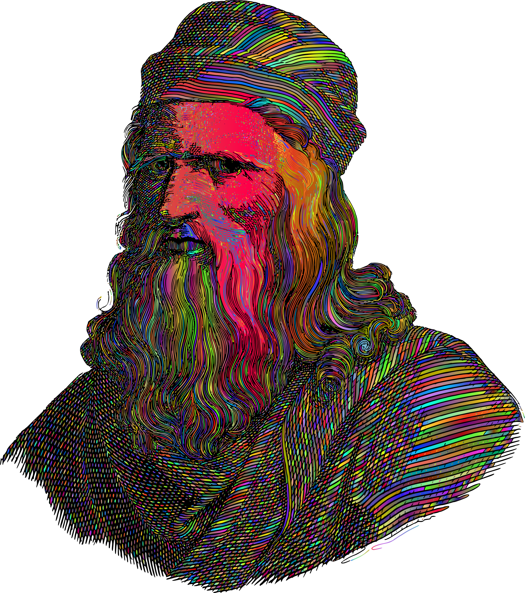 - Leonardo Da Vinci Portrait Line Art Renaissance Science Scientist Italy Italian Artist Painter Vintage Retro Old Antique Man People Person Human Colorful Prismatic Chromatic Rainbow