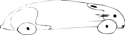 Cartoon sketch of what a pet rabbit would look like if it were a car, or had a car, or something.