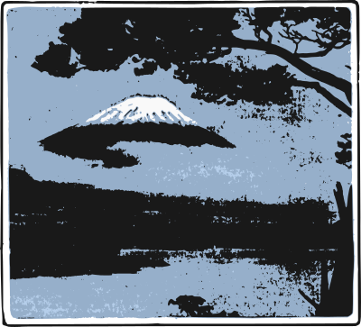 an abstract Mount Fuji with a tree in the foreground