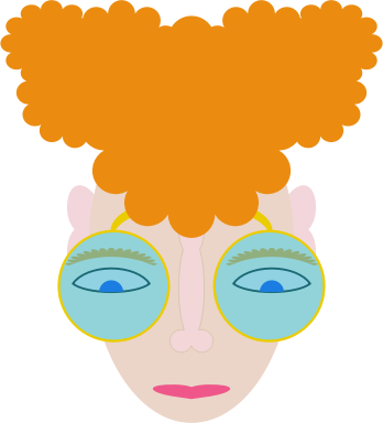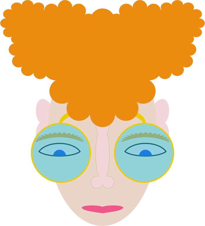 A curly redhead with big glasses is concentrating on something, be it reading, studying, soldering, or whatever else.