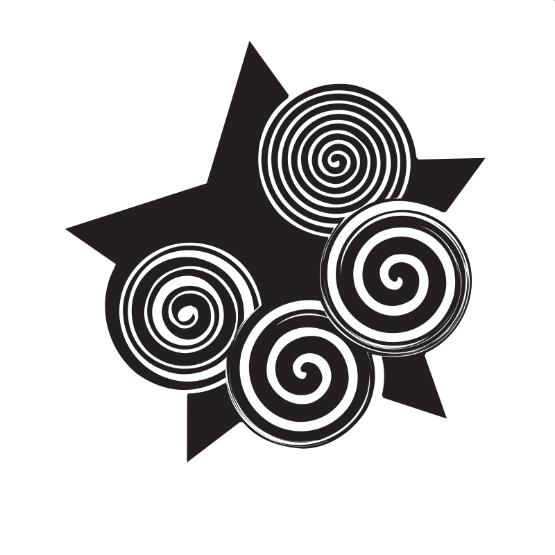 Black star with swirl effects.