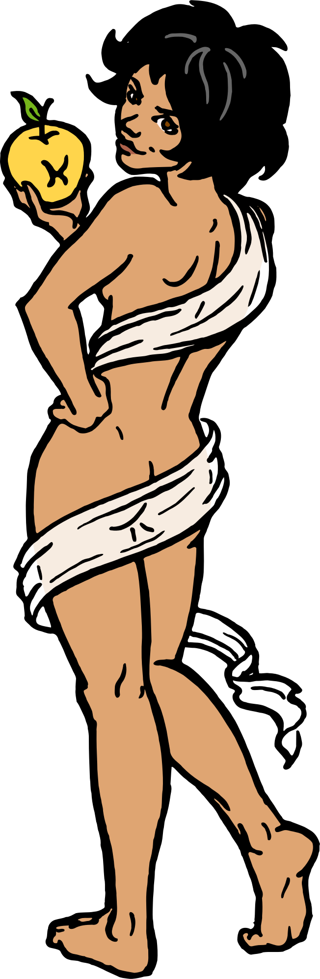 Nurbldoff's drawing of Eris holding the Golden Apple of Discord was one of the best contributions to the early Open Clip Art Library (as it was then called), and I think it deserves a colour version. So here's my effort.