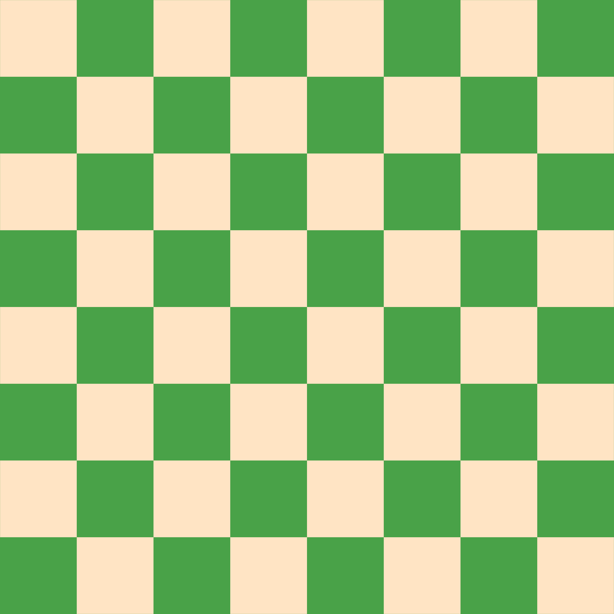 Following the lead of @Manuela in terms of more efficient code, I've basically copied @Manuela's code and plugged in some different color codes. I have no idea of how to code a .svg file. I'm even having a problem figuring out what color codes I need to use, although I'm more familiar with those. This chess board is a green and bisque board. For this board I chose the color "bisque" by sight rather than by the name of the color.