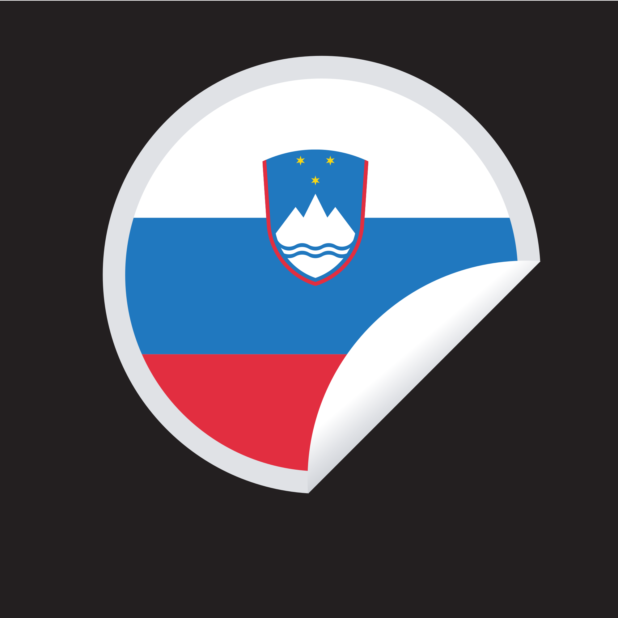 Slovenian flag inside a peeling sticker. Originally published by publicdomainvectors.org