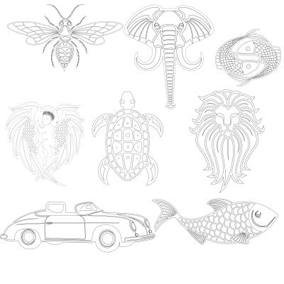 Set of vector clip art for colouring.Originally published by publicdomainvectors.org