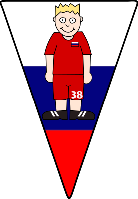 A pennant in style of the russish flag with a russish soccerplayer on it.