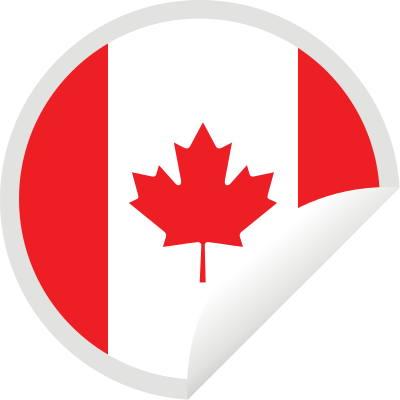 Round peeling sticker with the flag of Canada.