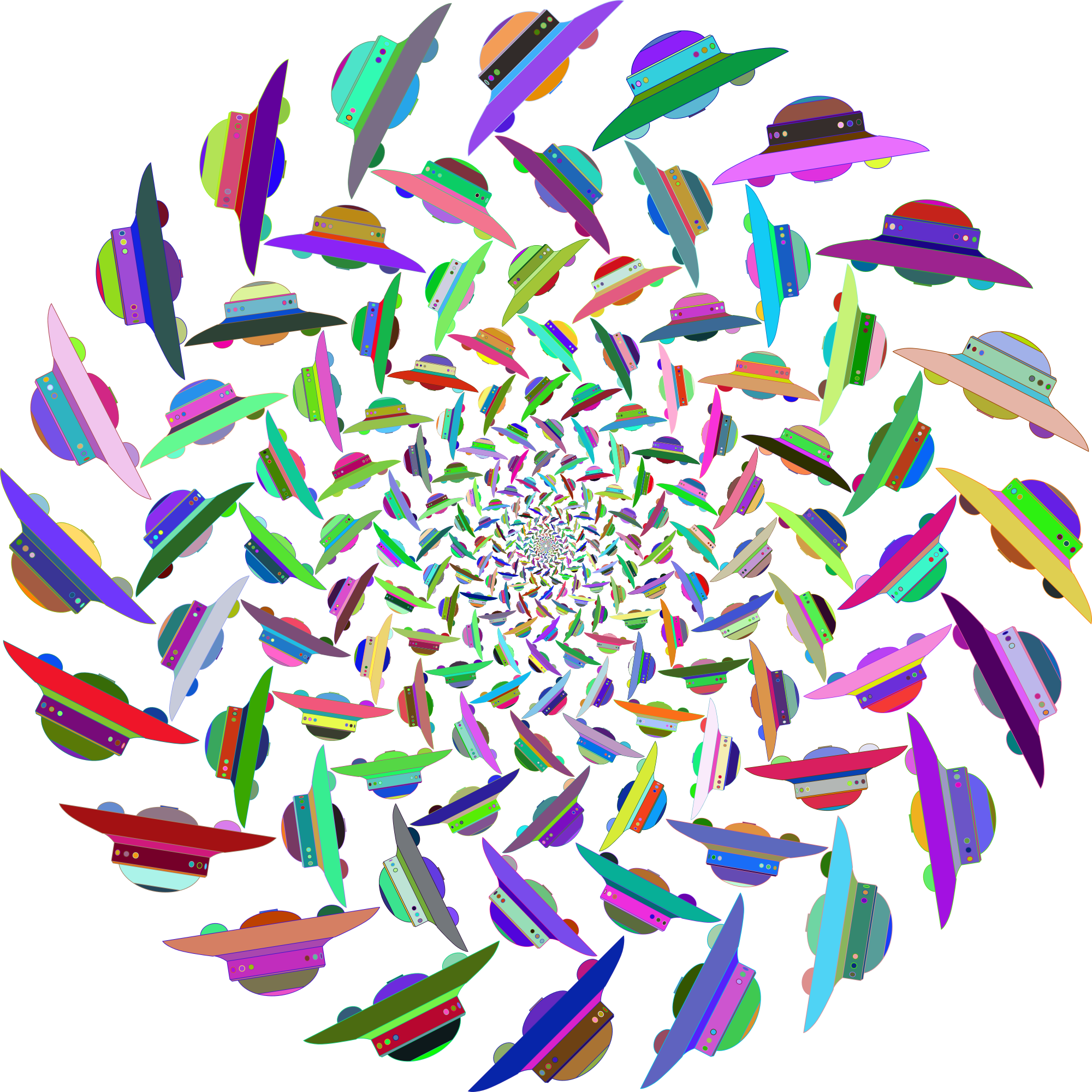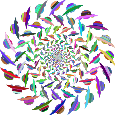 - UFO Vortex Spaceship Space Flying Saucer Vehicle Transportation ET Extraterrestrial Aliens Maelstrom Whirlpool Cyclone Decorative Decoration Ornamental Line Art Colorful Prismatic Chromatic Rainbow remix+27928