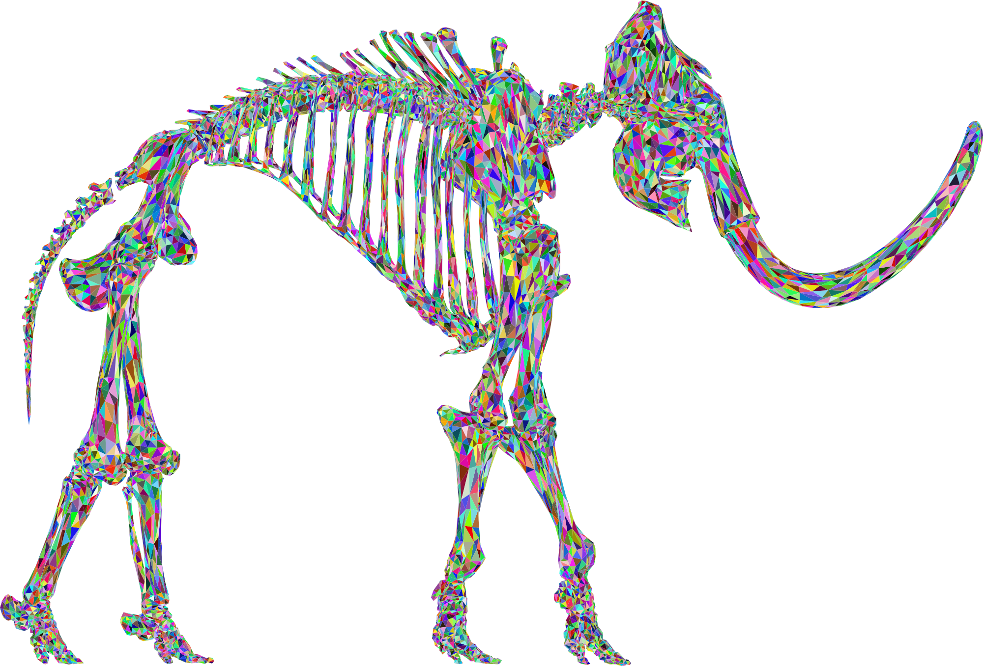 - Woolly Mammoth Animal 3D Skeleton Bones Fossil Extinct Elephant Low Poly Polygons Triangles Geometric Colorful Prismatic Chromatic Rainbow