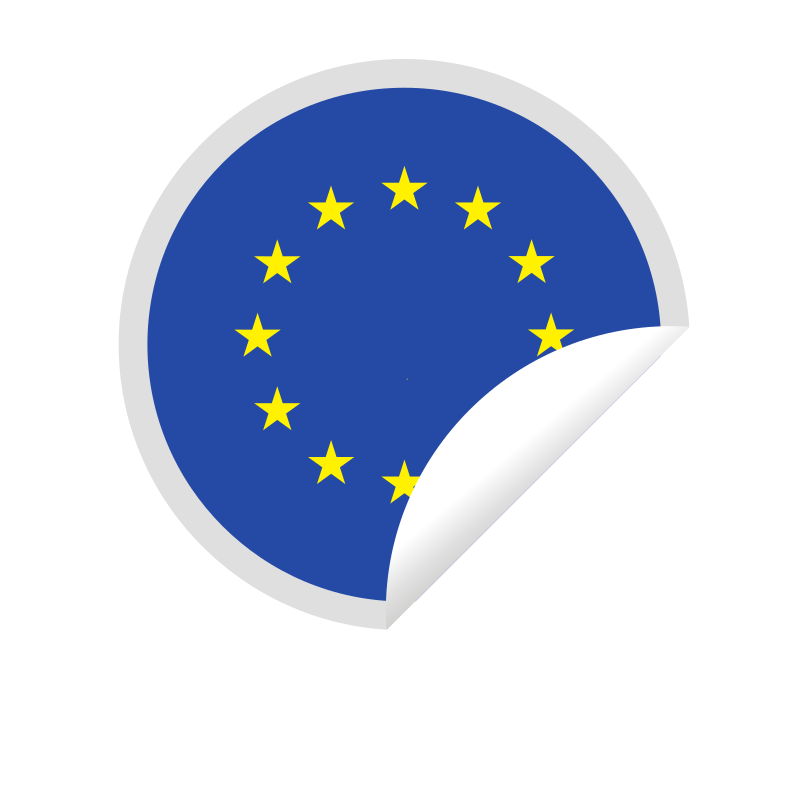 Round peeling sticker with the flag of EU.