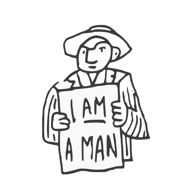 Pen doodle of a man holding a sign informing he is a man. Based on photo's of the 1968 Memphis Sanitation Strike.