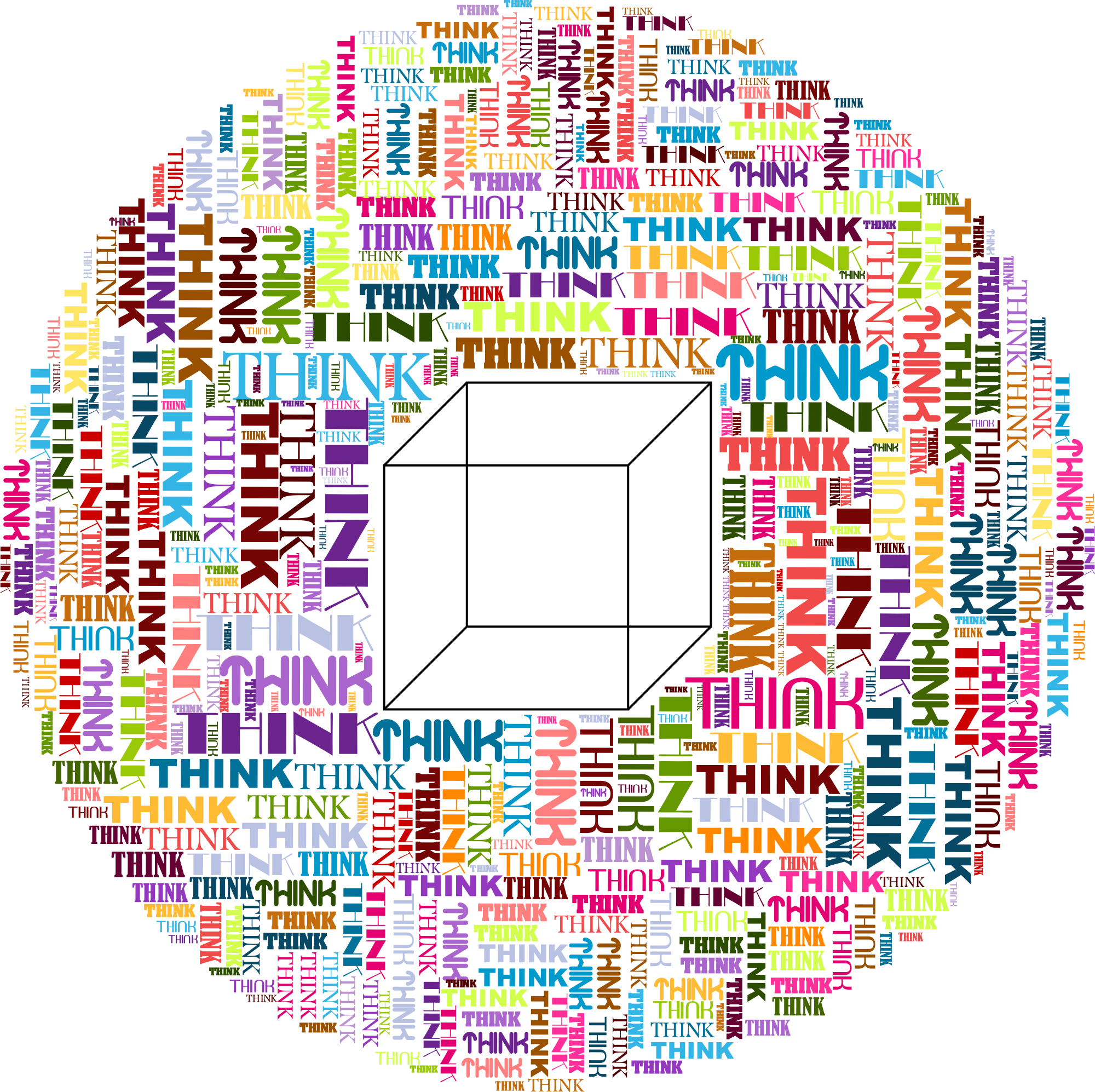 - Think Outside The Box Think Typography Philosophy Psychology Word Cloud Thought Mind Brain Cognition Cognitive Belief Believe Reason Ideas Concept Brainstorm Colorful Prismatic Chromatic Rainbow