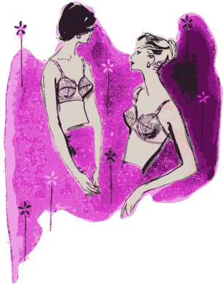 a vintage depiction of two women in bras