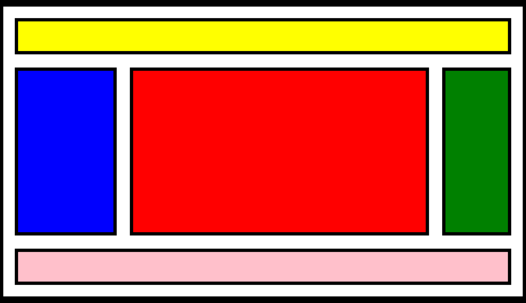 This is an example of a simple colored layout icon for an internet site: header, nav, main, footer, aside.