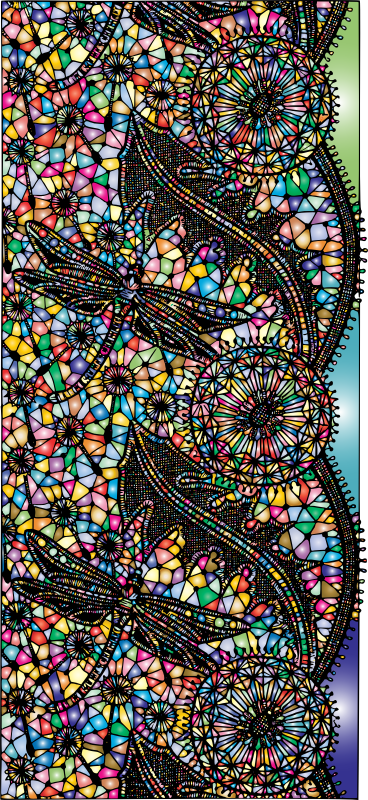 - Dragonfly Flowers Leaves Flourish Insect Animal Line Art Decorative Decoration Ornamental Vintage Retro Old Antique Colorful Prismatic Chromatic Rainbow