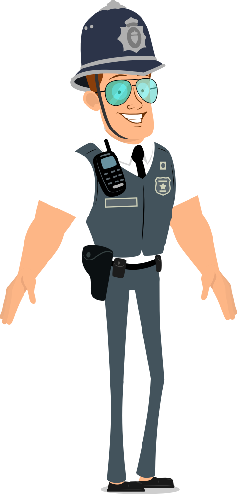 - cartoon character UK police sunglasses happy friendly standing