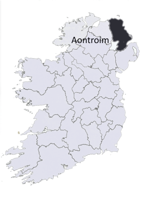 Antrim county map silouette on Ireland outline Map