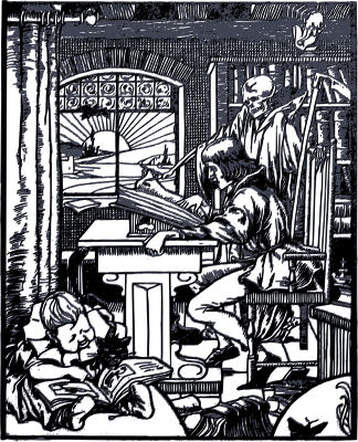 This deliciously morbid bookplate from 1894 shows the Grim Reaper helping a guy read a big book