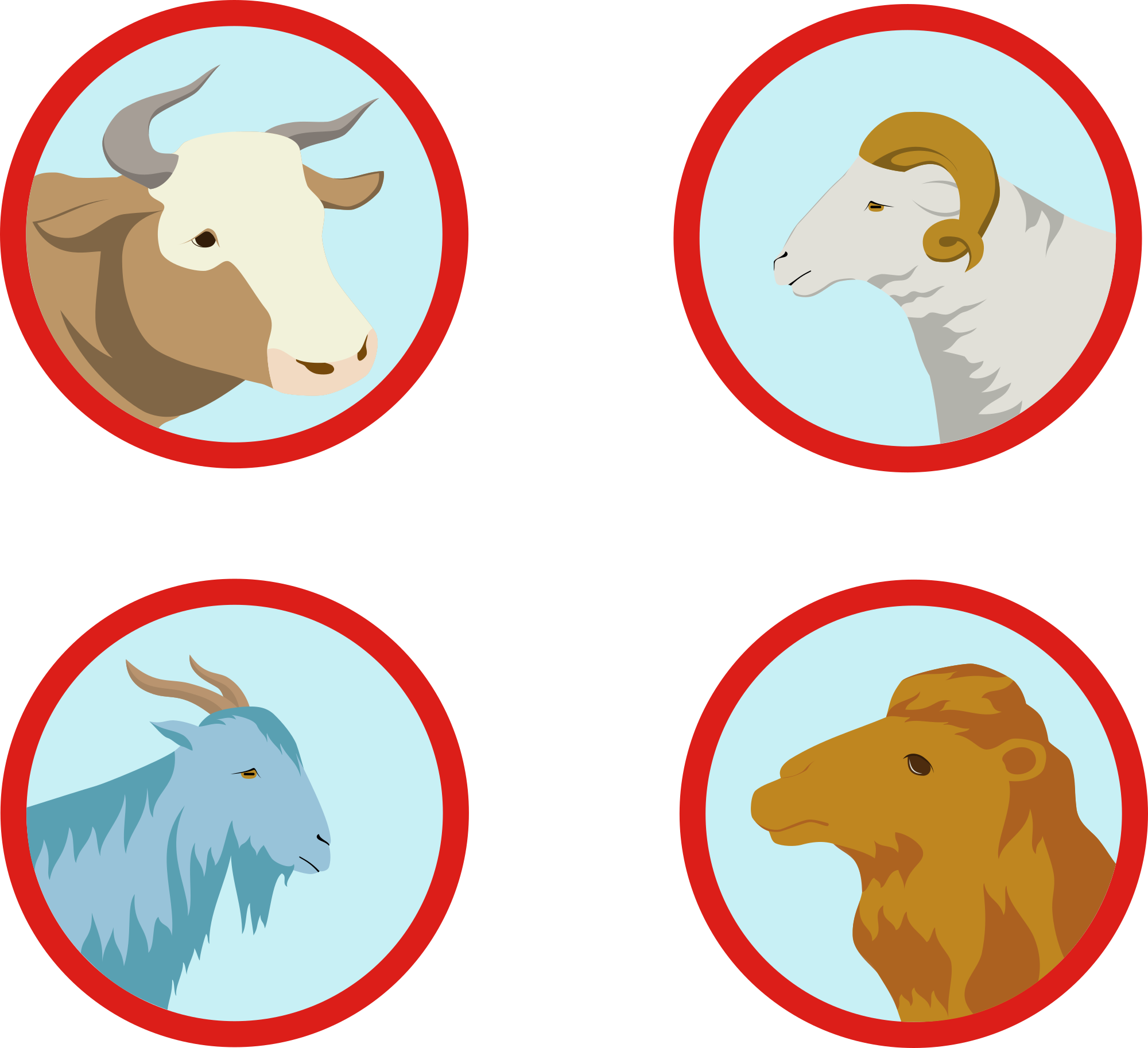 Cow Sheep Goat Camel Heads in Circles