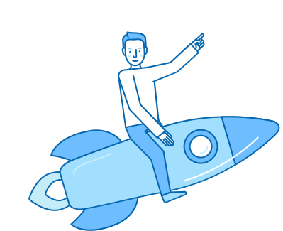 Animation of man riding a rocket