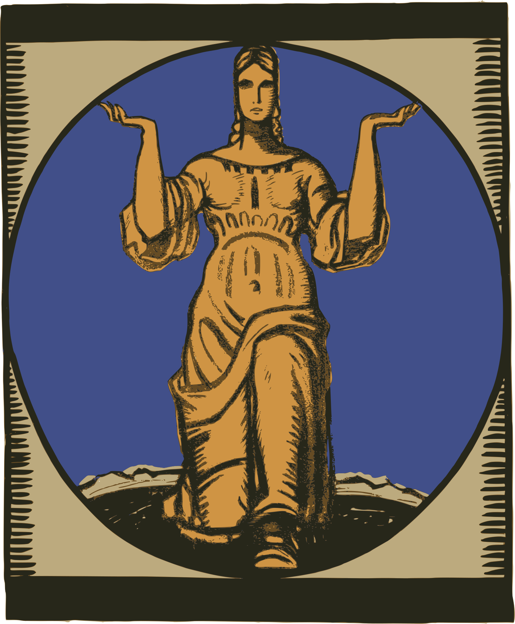 retro goddess holding up the world
